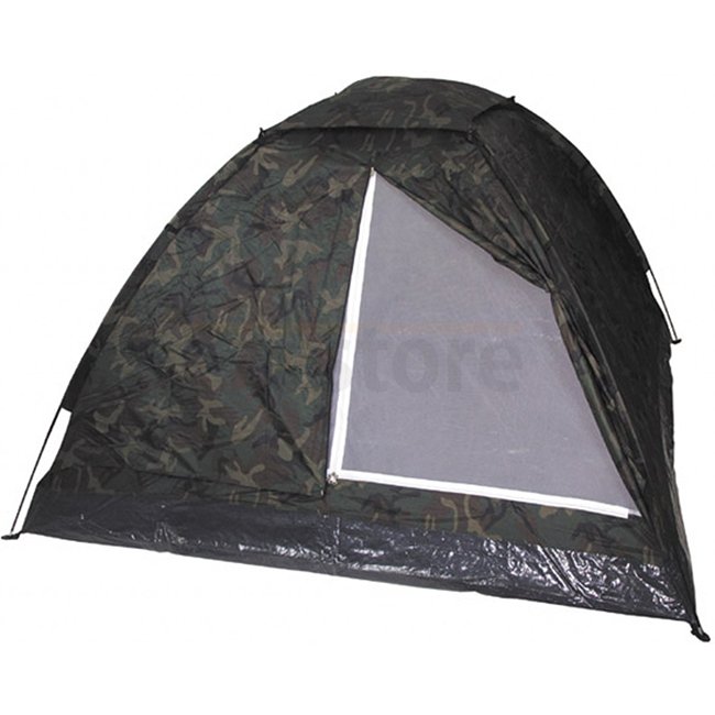 MFH Zelt Monodom - Wald - Einkanalige Konstruktion, Moskitonetz-Eingang, leichte Glasfaserstöcke, rutschfeste PU-Gewebe-Unterlage, Stahlzeltheringe, Abspannseile, Wassersäule 1500 mm, Packmaß: 65 x 12 x 12 cm, Abmessungen: 210 x 210 x 130 cm, w