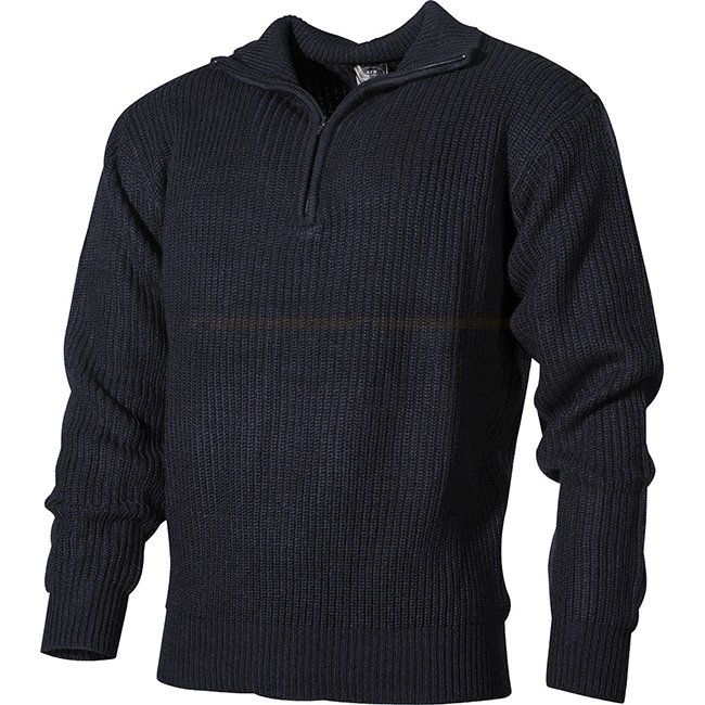 Bequemer blauer XL-Pullover mit verdecktem Reißverschluss am Kragen, aus grobem Strick 100% Acrylmaterial.