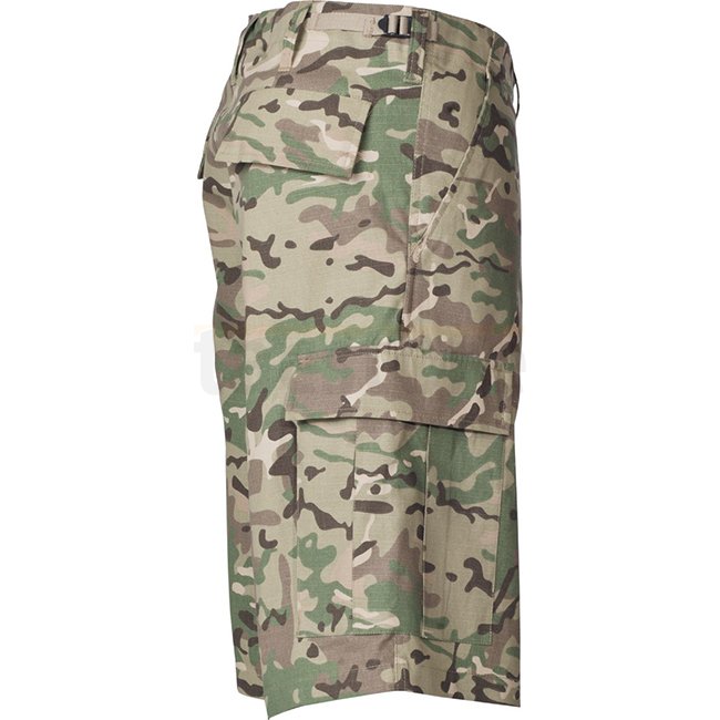 MFH US Bermuda Shorts aus Ripstop-Material mit Operation Camo Design. Eigenschaften: Knopfleiste, 6 Taschen mit Klappe und Knöpfen, verstellbarer Bund und extra breite Gürtelschlaufen. Hergestellt aus 100% Baumwolle.