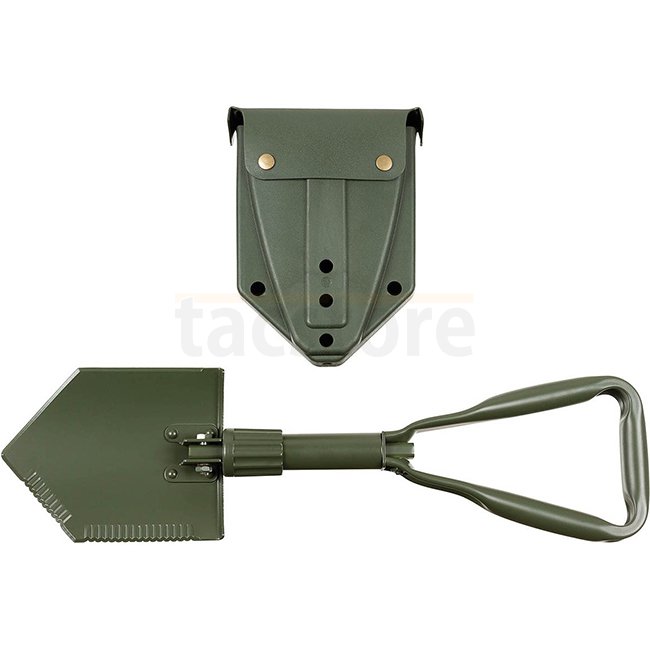MFH US Faltspaten Extra Stabil - Oliv. Robuster Stahlgriff und Klinge, fungiert auch als Hacke. Gezahnter Rand auf einer Seite, faltbares Design mit Schraubverschluss. Inklusive Gürtelbefestigungsgehäuse. Klingenmaß: ca. 21 x 16 cm. Gesamtlänge: ca. 60 cm