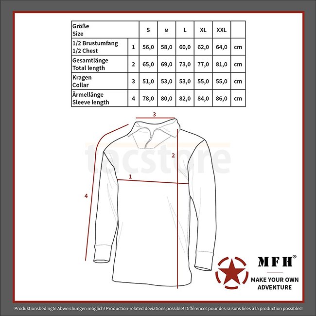 Hochwertiges MFH US Tactical Shirt mit langen Ärmeln in Olivgrün, Größe 2XL. Verfügt über einen kurzen Reißverschlusskragen, mehrere Taschen mit Reißverschlüssen und Klettverschluss, eine Tasche für Ellenbogenschützer, windabweisende Ärmelenden, Rip-Stop-