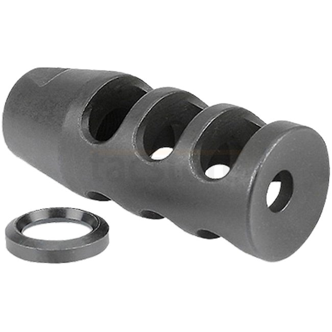 Verbessern Sie Ihr AR-15 mit dem Mündungsbrems von Midwest Industries. Hergestellt aus Stahl, verfügt diese Mündungsbremse über ein 1/2x28 Gewinde, kompatibel mit .223/5.56mm Kaliber Gewehren. Mit einem Gewicht von 102g wird sie mit einer Crush-Washer gel