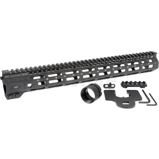 MIDWEST INDUSTRIES Combat Rail Einteilige Freischwinger-Handschutz M-LOK 15: Leichter, langlebiger Handschutz, kompatibel mit standardmäßigen geschmiedeten Obergehäusen. Ausgestattet mit einer 4140 wärmebehandelten Laufmutter, Schlüssel, Drehplatte, 6061