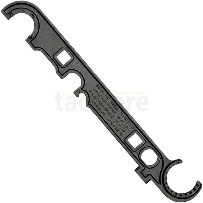 • ¾-Zoll-Schlüssel für A2-Mündungsvorrichtungen und zur Verwendung mit den dünnen Abflachungen vieler beliebter Schalldämpferhalterungen
