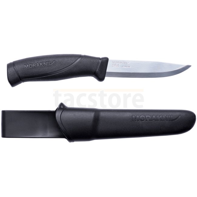 Morakniv Companion Schwarz - Edelstahl - Schwarz. Klinge aus hochwertigem Edelstahl mit einer Länge von 104 mm und einer Dicke von 2,5 mm. Langlebig und leicht mit 160 g. Der Griff besteht aus Polypropylen und bietet einen komfortablen Halt. Ideal für all