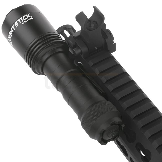 Nightstick LGL-170 Long Light - Schwarz ist eine strapazierfähige und leistungsstarke Taschenlampe mit einer Reichweite von 304m und einer Laufzeit von 1,30h. Sie verfügt über eine LED-Lichtquelle, ein IPX-7-Gehäuse und ein Picatinny-System für eine einfa