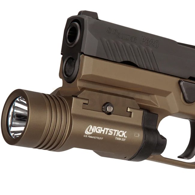 Nightstick TWM-30FD Taschenlampe - Dark Earth bietet eine Leuchtkraft von 1200 Lumen, mit einer Laufzeit von 1,75 Stunden, einer Reichweite von 194m und einem wasserdichten IPX-7 Gehäuse. Sie verwendet eine LED-Lichtquelle und wird mit 2x CR123 Batterien