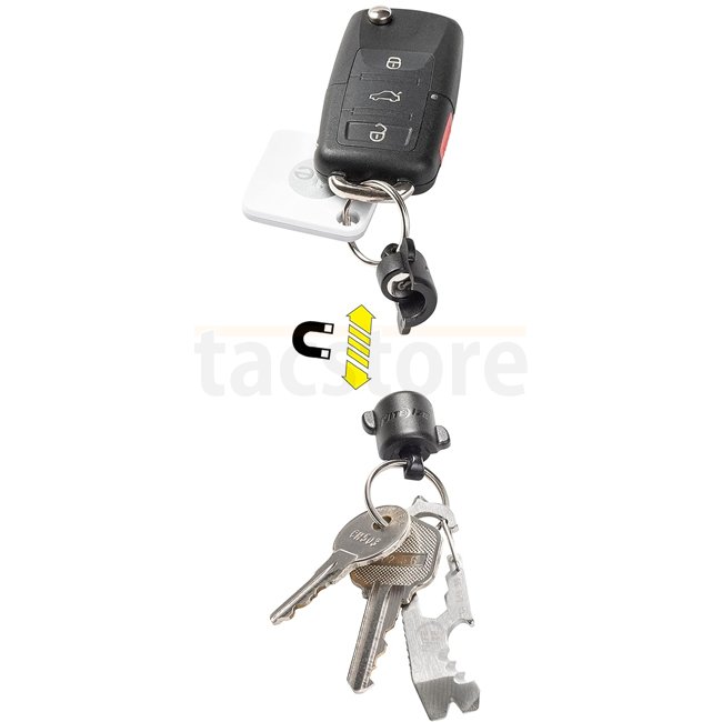 Der Nite Ize KeyRing 360 ist eine magnetische Quick-Connect-Verbindung mit einem Schlüsselring auf beiden Seiten, mit dem Sie Schlüssel schnell voneinander entfernen können. Der KeyrRing ist zum Beispiel ideal für Autoschlüssel. Der Magnetverschluss muss vor dem Öffnen gedreht werden und hat daher eine zusätzliche mechanische Sicherung.