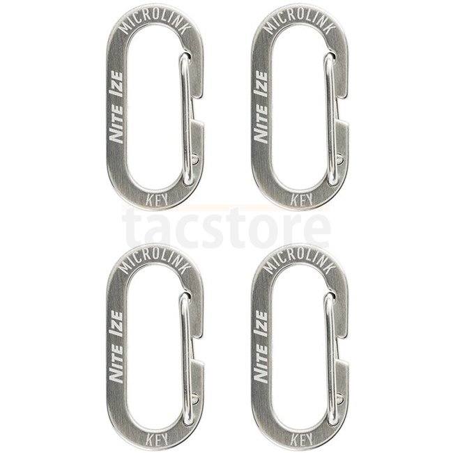 Nite Ize Microlink Karabiner 4er-Pack - kompakte Karabiner aus rostfreiem Stahl, perfekt zum Sichern von Schlüsseln, Ausrüstung und mehr. Vierer-Pack mit Abmessungen von 25 x 12 x 2 mm und einem Gewicht von jeweils 4 g.