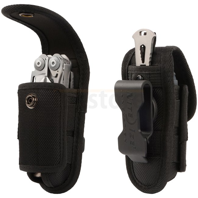 Dieses universelle Holster für Multi-Tools verfügt über einen Schnappverschluss und elastische Seitenteile, welche sich ausdehnen, und das Holster so mit fast allen Multitools und Klappmesser jeder Grösse kompatibel macht. Der robuste drehbare Clip hält sicher an Ihrem Gürtel oder Hosenbund und lässt sich in 8 Positionen verriegeln.