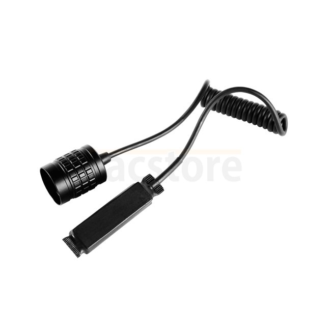 Fernbedienungsschalter mit Spiralkabel, entwickelt für Olight M10/M18 Taschenlampen. Verfügt über einen geräuschlosen Schalter ohne Klickgeräusch für unauffällige Bedienung. Speziell für die Olight M10/M18 Maverick Modelle gefertigt.