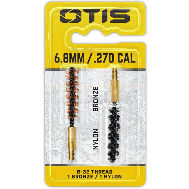 Das Otis Dual Brush Pack cal .27 enthält 1x Nylonbürste & 1x Bronzbürste zur Reinigung von 6,8 mm, .270cal, 7mm Gewehren. Die Länge der Bürsten beträgt 5cm, mit einer Gewindegröße von 8-32.