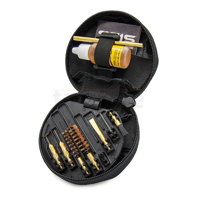 Reinigungsset für Pistolen im Kaliber .22 cal -.45 cal, verstaut in einem leichten, kompakten Softpack-Case mit den Maßen 10 x 10 x 6cm. Hergestellt in den USA.