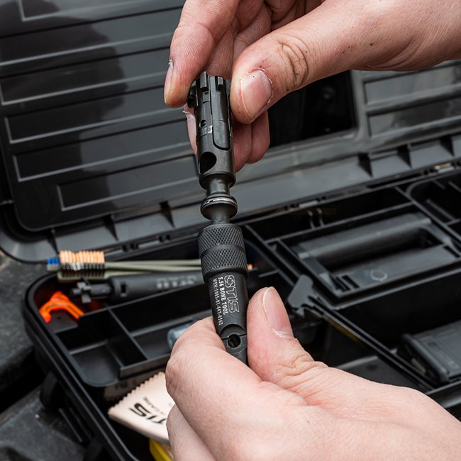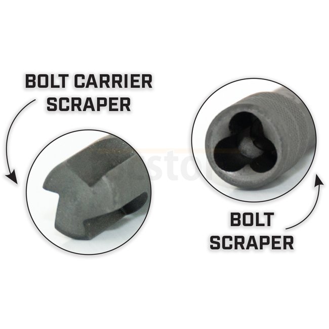 Das B.O.N.E.® Tool wurde speziell zum Entfernen von Kohlenstoff und Verschmutzungen aus dem Boltcarrier von MSR/AR-Gewehren entwickelt. Dieses schnell zu reinigende Werkzeug entfernt Verschmutzungen vom Verschluss, Verschlussträger und Firing-Pin. Enthält außerdem ein 8-32-Gewindeloch, das als T-Handle dient.