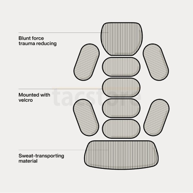 Der PGD 10-Pad Helm-Liner besteht aus zehn Memory-Foam Polstern, die sich innerhalb von 2-3 Sekunden der Form Ihres Kopfes anpassen. Das Material ist schweißableitender Memory-Foam hergestellt in Europa von Protection Group Danmark, entworfen zur Reduzierung stumpfer Gewalteinwirkung und mit dem Gefühl eines schwebenden Helms.