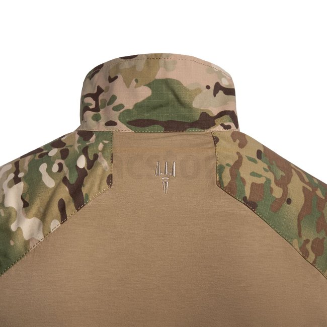 Durch das kompakte Design und die hochwertigen Materialien widersteht das modern geschnittene Advanced Combat Shirt auch widrigsten Einsatzbedingungen. Ein mittelhoher Kragen schützt vor Fragmenten und Hülsen, stört dabei aber aufgrund des passgenau anliegenden Schnitts nicht beim Tragen eines Plattenträgers. Gleiches gilt für den verwendeten Reissverschluss, welcher im Brustbereich sehr flach ist und im Kinnbereich über zwei Schutzkappen verfügt, was ein Verletzen des Trägers beim Schliessen vermeidet. Um unnötige Druckpunkte zu vermeiden, sind alle Nähte flach gehalten.
