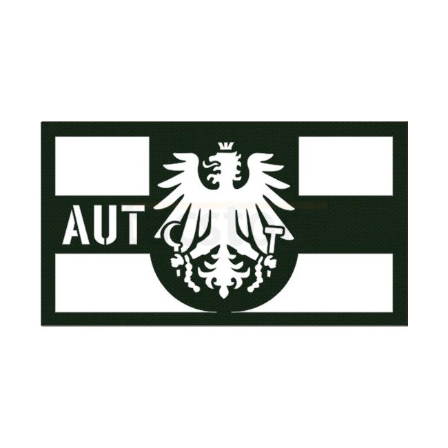 Hochwertige Pitchfork Austria IR Print Patch in Coyote-Farbe. Vorderseite aus IR-Folie mit bedrucktem Design, Rückseite mit Hakenfläche. Maße 90 x 50 mm.