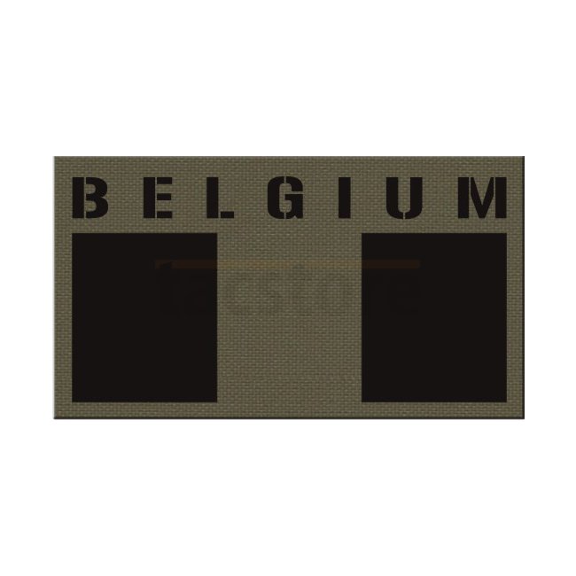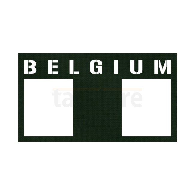 Pitchfork Belgien IR Druck-Patch in Ranger Grün Farbe. Vorderseite aus IR-Folie mit einem gedruckten Design, Rückseite hat eine Hakenoberfläche. Maße 90 x 50 mm.