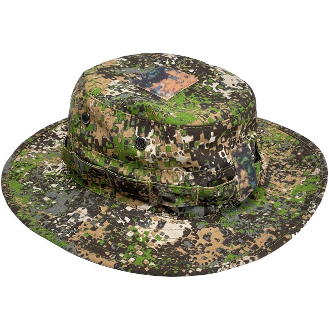 Gefertigt aus einem hochwertigen, eigens für die Pitchfork Produktlinie entwickelten 65/35 Polyester-Baumwoll Mischgewebe, wird die moderne Neuinterpretation des klassischen Boonie-Dschungelhutes zu deinem zuverlässigen Begleiter - egal, ob unter heissen, kalten oder regnerischen Bedingungen. Anders als bei den anderen Farben verfügt dieser Stoff nicht über eine textiltechnisch fortschrittliche „near Infrared“ (nIR) Behandlung um die visuelle Signatur bei Betrachtung durch ein modernes militärisches Nachtsichtgerät zu reduzieren.
