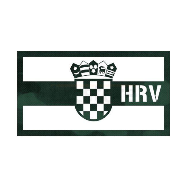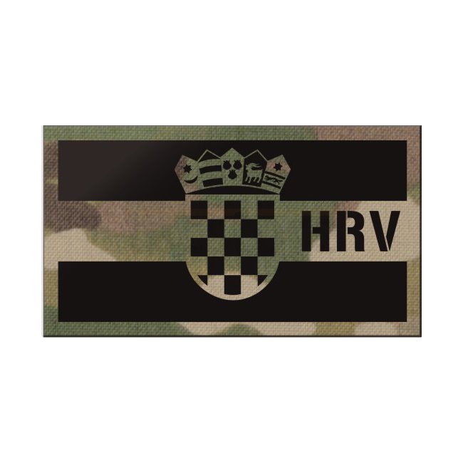 Mistgabel Kroatien IR Druckpatch in Multicam-Farbe. Vorderseite aus IR-Folie mit gedrucktem Design, Rückseite mit Hakenoberfläche. Maße: 90 x 50 mm.