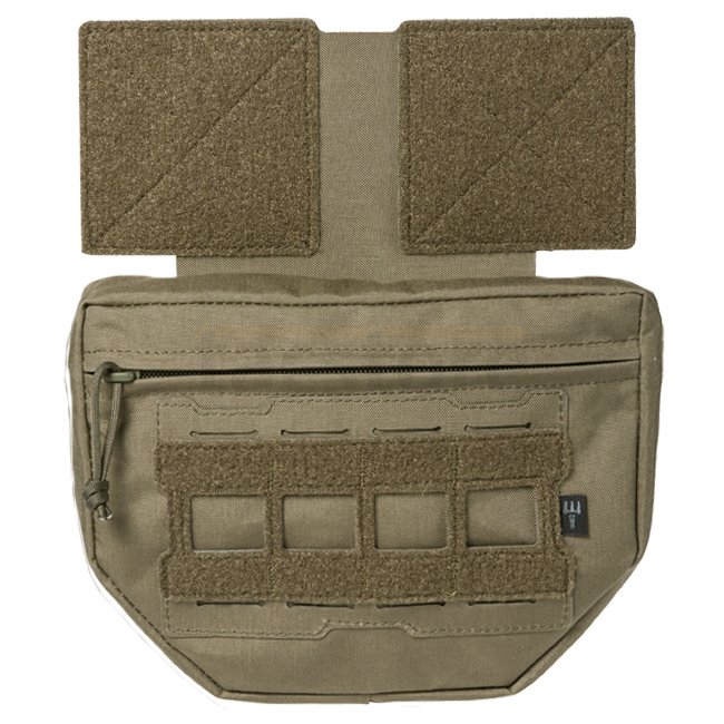 Die Drop Fanny Protector Pouch kann durch die universellen Klett-Flächen an eine Vielzahl von Westen, Plate Carriers sowie Chest Rigs angebracht werden.