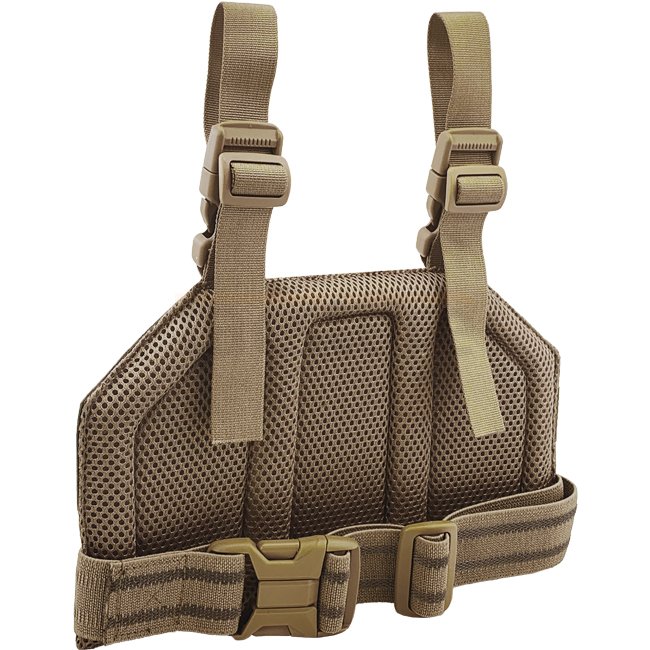 Die Pitchfork Drop Leg Plattform - Coyote ist für eine "Mittelhöhe"-Tragweise konzipiert, die knapp unterhalb der Hüfte mit einem Einzelgurt-Design für den Oberschenkel getragen wird. Sie verfügt über eine Dreipunkt-Sicherheitsschnalle, einseitig gummiert