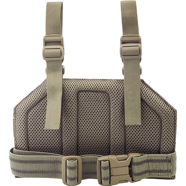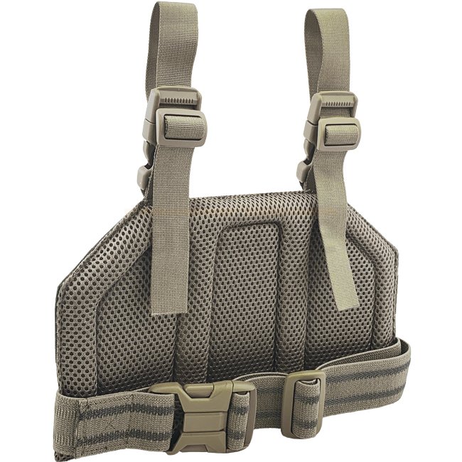 Die Drop Leg Platform ist für eine sogenannte «Mid-Ride» Tragweise gedacht. Anders als herkömmliche Oberschenkel-Plattformen wird diese direkt unterhalb der Hüfte getragen und mit nur einem Gurt um den Oberschenkel gehalten. Dieser weist eine Drei-Punkte Sicherheitsschnalle sowie für einen perfekten Halt einseitig gummiertes Band auf. Gegen oben hin wird das Panel mittels zwei längenverstellbaren Riemen am Gürtel befestigt. Die Innenseite ist mit einem weichen Abstandsgeflecht versehen, welches sich aufgrund der ergonomischen Form flach um das Bein legt. Die Aussenseite verfügt über eine LaserCut MOLLE Oberfläche sowie drei Streifen Klett, womit Taschen wie auch ein Holster montiert werden können, je nach persönlicher Präferenz.