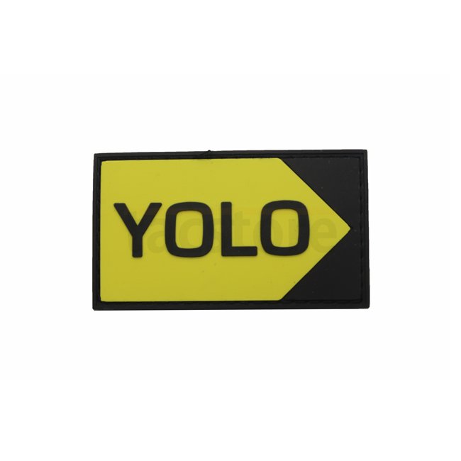 Heugabel Jalon YOLO Aufnäher - Farbe, 70 x 45,5 mm Abmessungen.