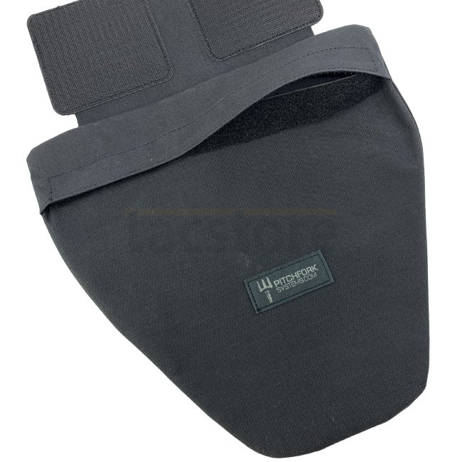 Der Pitchfork Large Groin Protector ermöglicht es den Schutzbereich einer Einsatzweste um wertvolle Fläche zu erweitern. Durch den Klettverschluss auf der Rückseite lässt sich ein weichballistischer Einschub einsetzen, welcher gegen die gängigen Kurzwaffenkaliber wie 9mm, .40 S&W, .357 Magnum, .357 SIG sowie .44 Magnum Schutz bietet (separat erhältlich).