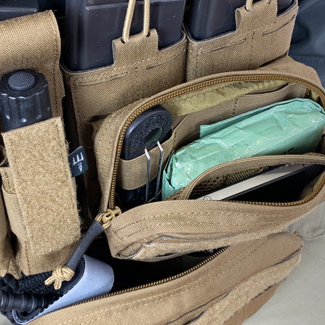 Das Pitchfork MicroMod Chest Rig Complete Set ist ein frei konfigurierbarer, MOLLE-System basierender Chest Rig, welcher ab Werk komplett mit Taschen sowie den benötigten Schulter- und Hüftgurten ausgeliefert wird. Im Lieferumfang enthalten sind folgende Komponenten: