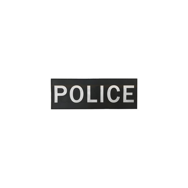 Weiß auf schwarzem Pitchfork Polizei-Abzeichen - Klein, 30 x 90 mm, Gummi, Klettverschluss hinten.