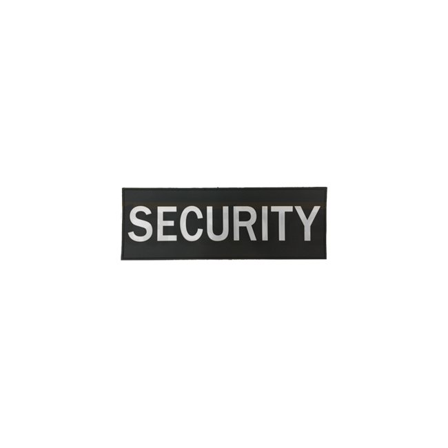 Mistgabel-Sicherheitsabzeichen - Klein: Weiß auf schwarzem Gummiabzeichen mit Klettverschluss, 30 x 90 mm.