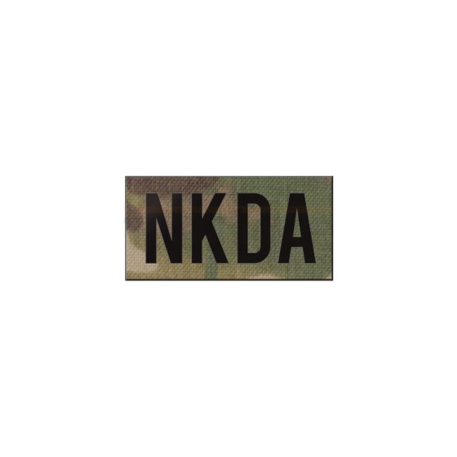 Kompakte Mistgabel Klein NKDA IR Patch in Multicam-Druck, Vorderseite aus IR-Folie und Rückseite mit Hakenfläche. Größe 50 x 25 mm.