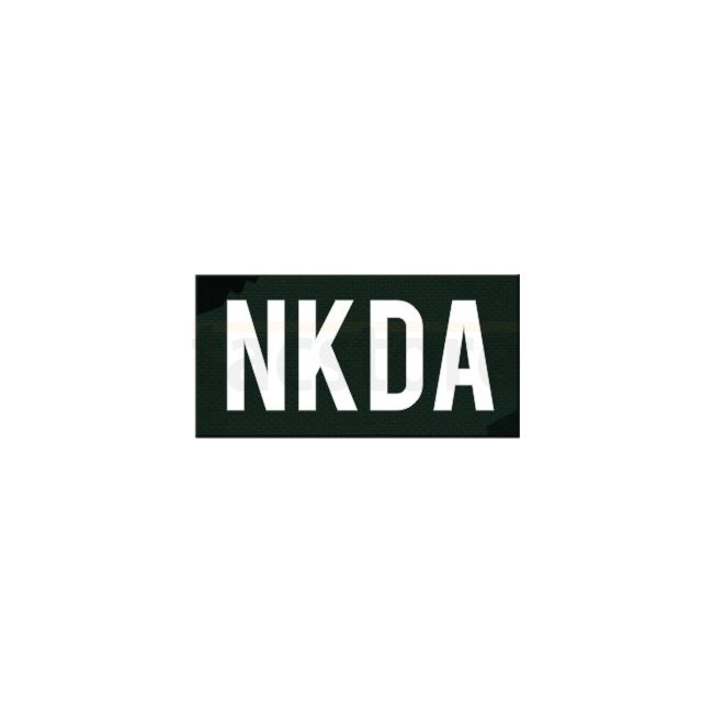 Mistgabel Small NKDA IR Patch in Ranger Grün. Vorderseite: IR-Folie, Rückseite: Hakenfläche. Abmessungen: 50 x 25 mm.
