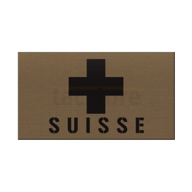 Der Pitchfork Suisse IR Druck-Patch - Coyote zeichnet sich durch eine Vorderseite aus IR-Folie mit einem bedruckten Design und einer Rückseite mit einer Hakenoberfläche aus. Seine Abmessungen sind 90 x 50 mm.