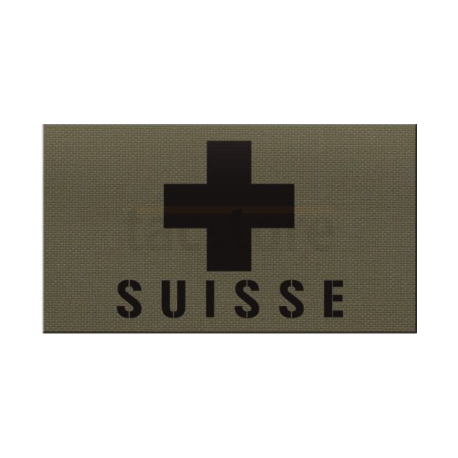 Pitchfork Suisse IR Druckaufnäher - Ranger Grün. IR-Folie vorne, Hakenfläche hinten. 90 x 50 mm.