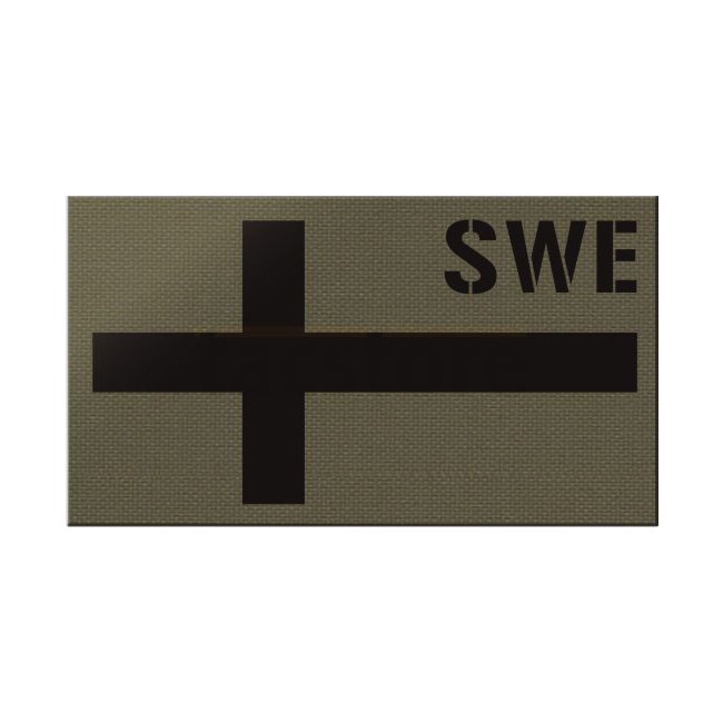 Mistgabel Schweden IR Druckaufnäher - Ranger Grün. Vorne: IR Folie, bedruckt. Rückseite: Hakenfläche. Abmessungen: 90 x 50 mm.