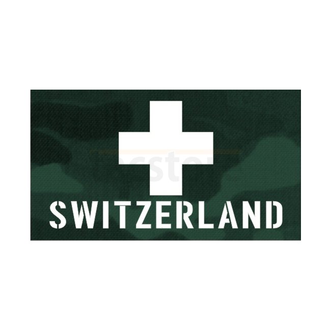 Hochwertige Pitchfork Schweiz IR Druckaufnäher in Multicam. Vorderseite aus IR-Folie, präzise bedruckt. Rückseite mit Hakenfläche zur einfachen Befestigung. Abmessungen sind 90 x 50 mm.