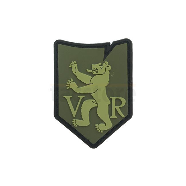 Pitchfork Taktischer Patch AR - Olive mit Abmessungen 37 x 45 mm und Klettverschlussrücken.