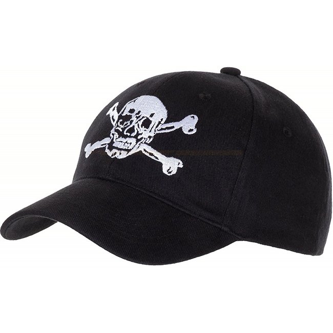 PureTrash BB Cap mit flacher SKULL Stickerei in Schwarz. Verstellbare Metallschnalle, verstärkte Nähte und gesteppter Schirm für einen stylischen Look.