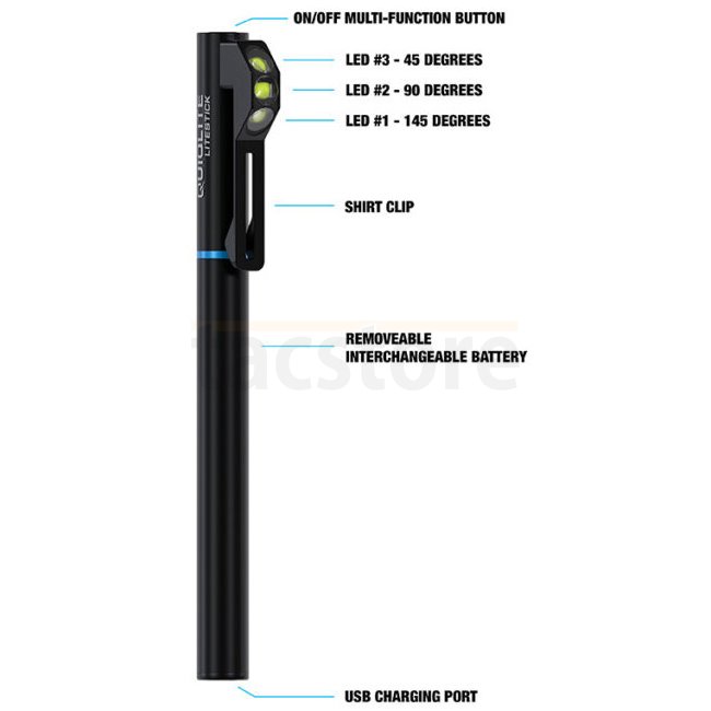 QuiqLite LiteStick WhiteLite: USB wiederaufladbar, 20-200 Lumen, Sicherheitsblitz, freihändige Beleuchtung, langlebiges Aluminium