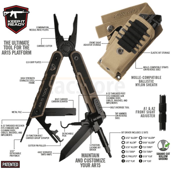 Dieses kräftige, zusammenklappbare X-Frame-Werkzeug wurde speziell für die Bedürfnisse von AR15-Besitzern entwickelt, die ihre Waffe am Laufen halten möchten. Es beginnt mit strukturierten, eisenharten G-10-Seitenplatten für einen besonders sicheren Halt. Der Rahmen selbst ist vollständig mit einem fokussierten Satz hochleistungsfähiger AR-Plattform Tools ausgestattet. Es versetzt Benutzer in die Lage, Kohlenstoff von allen 12 kritischen Oberflächen der Bolzenträgergruppe schnell zu entfernen, Reparaturen vor Ort oder auf der Werkbank durchzuführen, Fehlfunktionen zu reduzieren, Zubehör hinzuzufügen oder zu entfernen, Visiereinstellungen vorzunehmen und ihre Waffen einfach zu zerlegen und wieder zusammenzubauen. Dies ist das ultimative Multitool für das AR15! |