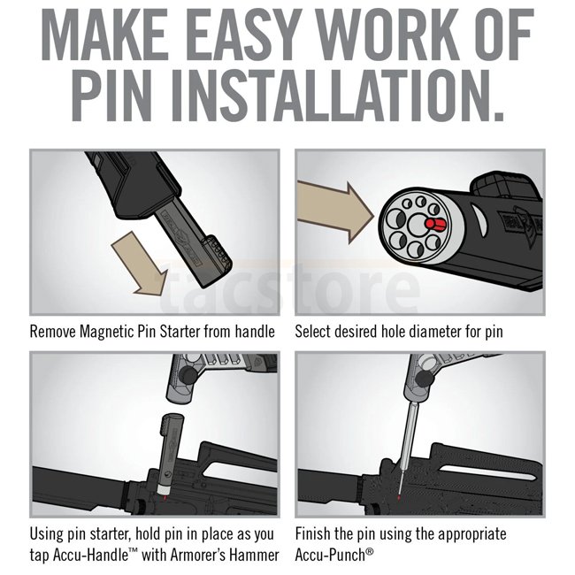 Der von Büchsenmachern getestete und beeinflusste Armorer's Master Hammer ist ein 567g schwerer, 24cm langer, geschmiedeter Full-Length Tang Hammer für perfekte Balance und ideale Ergonomie für präzise Kontrolle. Eine abnehmbare Soft-Blow-Hammerkopfabdeckung und austauschbare Hammerköpfe mit integrierter Aufbewahrung erleichtern die Installation der Hammerköpfe. Im Griff befindet sich ein abnehmbarer Magnetstift-Starter aus Edelstahl, der beim Bau oder Umbau von Schusswaffen hilfreich ist.