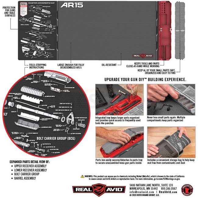 Die ultimative Lösung für Waffenbauer: Die Real Avid Master Armorers Mat schützt große Teile und organisiert kleine Komponenten für einen einwandfreien Bauprozess.