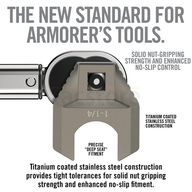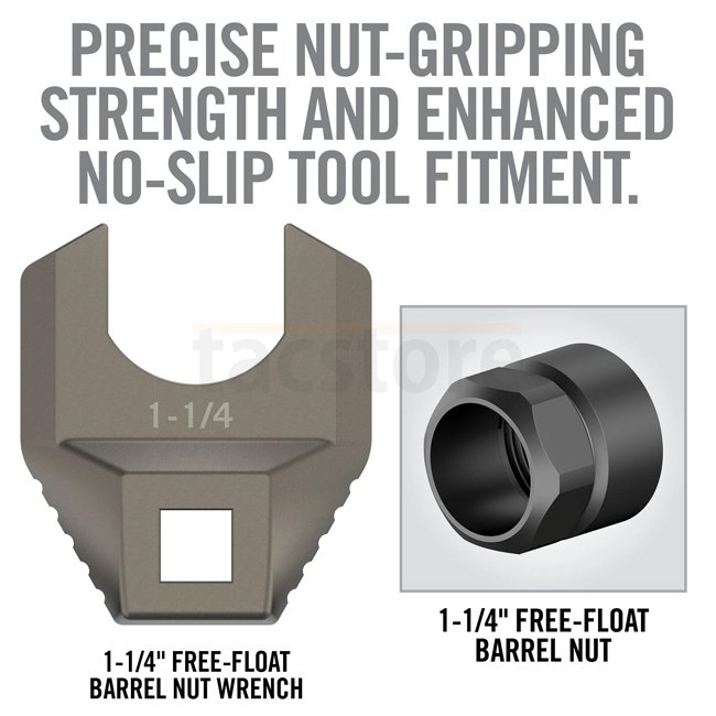 Die Master-Fit 1-1/4” Free-Float Barrel Nut Wrench wurde speziell für die präzise Montage entwickelt und ist darauf spezialisiert, Drehmoment auf 1-1/4” Free-Float Barrel Nuts sicher zu übertragen. Die mit Titan beschichtete Edelstahlkonstruktion bietet enge Toleranzen für solide Muttern-Greiffestigkeit und verbesserte rutschfeste Werkzeugkontrolle. In Kombination mit der Master-Fit ½″ Drive Torque Wrench hebt diese Kombination Ihr Waffenbauerlebnis auf ein ganz neues Niveau. Die Master-Fit Crowfoot ½″ Schraubenschlüssel funktionieren auch mit jedem Standard ½″ Antriebsschlüssel.