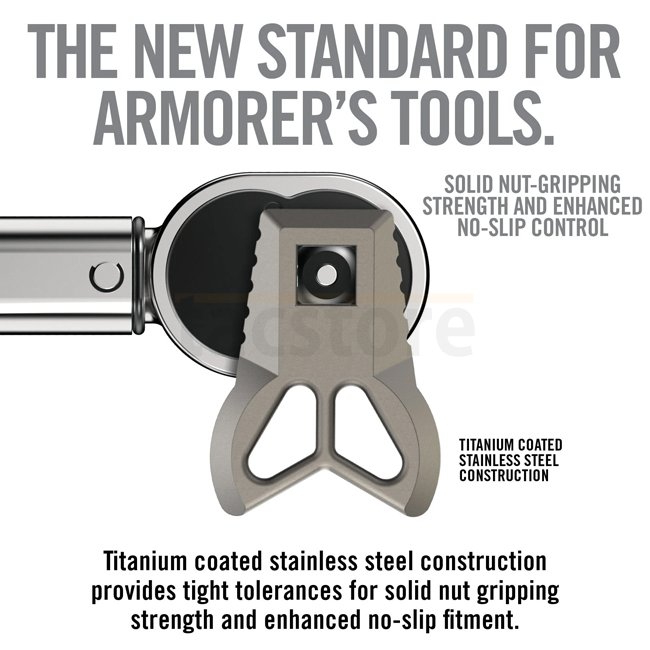 Die Master-Fit 3 Prong Flash Hider Wrench wurde speziell für die präzise Montage entwickelt und ist darauf spezialisiert, Drehmoment auf 3-Prong Mündungsfeuerdämpfer sicher zu übertragen. Die mit Titan beschichtete Edelstahlkonstruktion bietet enge Toleranzen für solide Muttern-Greiffestigkeit und verbesserte rutschfeste Werkzeugkontrolle. In Kombination mit der Master-Fit ½″ Drive Torque Wrench hebt diese Kombination Ihr Waffenbauerlebnis auf ein ganz neues Niveau. Die Master-Fit Crowfoot ½″ Schraubenschlüssel funktionieren auch mit jedem Standard ½″ Antriebsschlüssel.