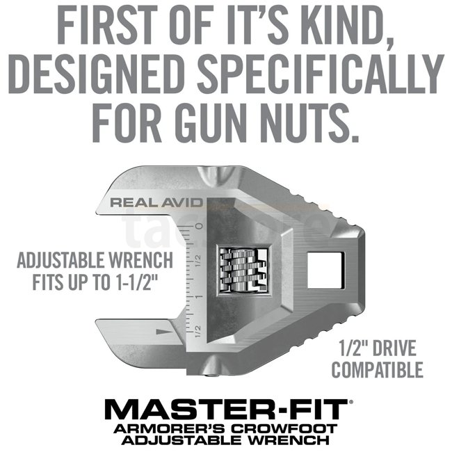 Der Master Fit Armorer’s Crowfoot Adjustable Wrench wurde entwickelt, um eine präzise Passform für Waffenteile mit unterschiedlichen Toleranzen zu gewährleisten. Es ist der erste verstellbare Hahnenfußschlüssel, der speziell für Schusswaffen entwickelt wurde. Sie können also sicher sein, dass Sie das richtige Drehmoment aufbringen, das für Anwendungen wie AR-Mündungsbremsen/Feuerscheindämpfer und Barrel Nuts erforderlich ist, ohne Ihre Investition zu beeinträchtigen.