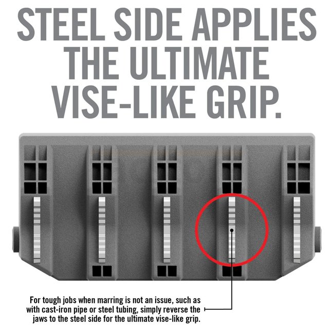 Die Smart-Jaws – Tube-Fit Sleeves für Master Gun Vise – revolutionäre Werkzeuge zum präzisen und einfachen Sichern zylindrischer Objekte. Diese verbesserten Schraubstockbacken sind so konstruiert, dass diese Schalldämpfer, PVC, Gussrohre und alle Arten von Rohren in einem sicheren Griff festhalten. Das doppelseitige Design bietet zwei unterschiedliche Griffflächen, die auf unterschiedliche Anwendungen zugeschnitten sind. Bei empfindlichen Gegenständen wie Schalldämpfern bietet die gummierte V-förmige Oberfläche eine nicht beschädigende und hitzebeständige Unterstützung, die eine ausreichende Griffkraft gewährleistet, ohne Ihre Investition zu beschädigen. Wenn Sie mit robusten Materialien wie Gusseisenrohren oder Stahlrohren arbeiten, bei denen Beschädigungen kein Problem darstellen, klappen Sie einfach die Backen um, um eine V-förmige Metalloberfläche freizulegen, die einen ultimativen schraubstockähnlichen Halt bietet. Diese Sleeves wurden speziell für die Verwendung mit dem Master Gun Vise entwickelt und können Rohre mit einem Durchmesser von bis zu 3,75’’ / 9.5cm effektiv aufnehmen, was sie zu vielseitigen Werkzeugen für die Sicherung verschiedener Größen von zylindrischen Objekten bei Wartung oder Modifikationen macht.