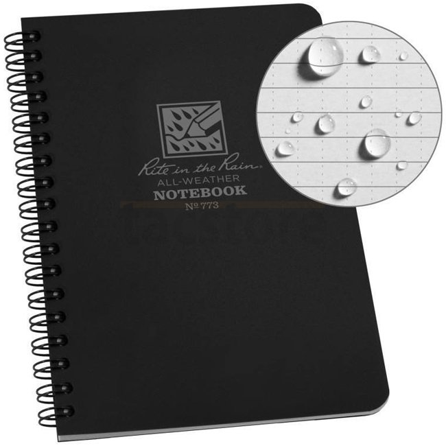 Rite in the Rain Polydura Side-Spiral Notebook 4.875 x 7 - Black