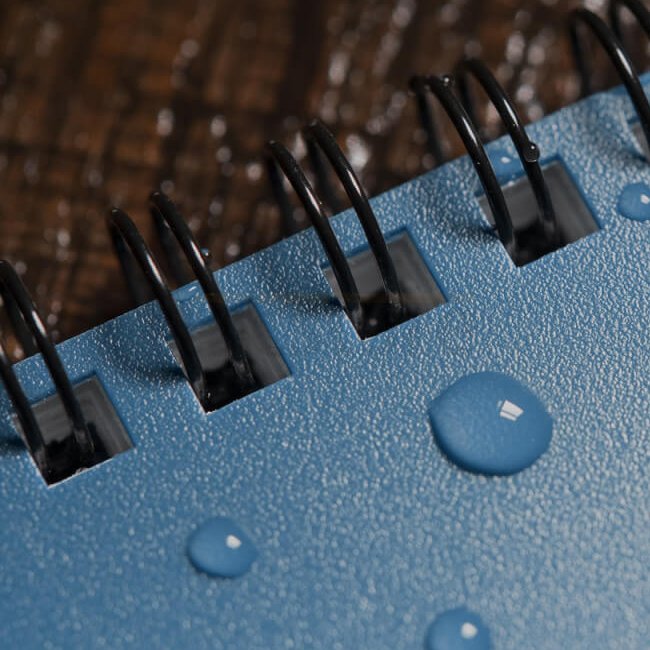 Rite in the Rain Polydura Seiten-Spiral-Notizbuch 4,875 x 7 - Blau, mit einem schlagfesten Wire-O-Design und einem robusten, aber flexiblen Polydura-Umschlag, der Notizen vor Kratzern schützt. Beinhaltet Lineale, Umrechnungstabellen und Maßstabsangaben, d